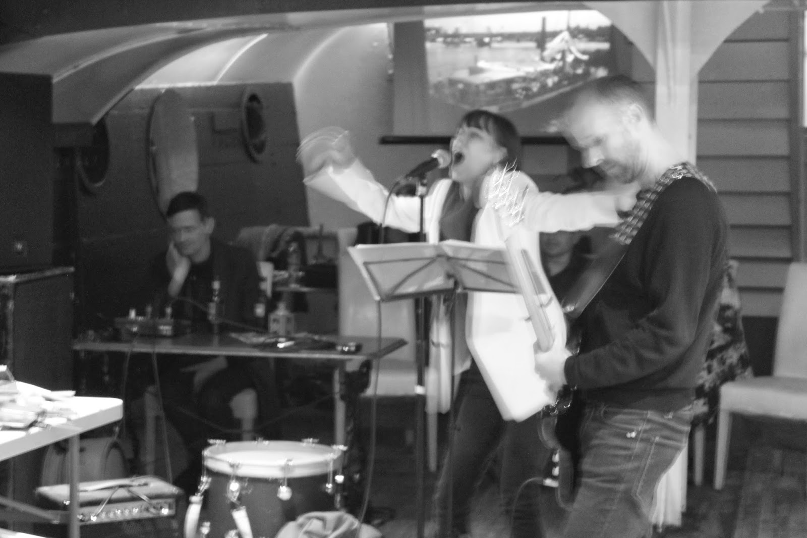 Another great evening of exploratory music was had at this edition of Boat-Ting. The first performance was an excellent solo drum set from Steve Noble featuring maracas, singing gongs, and a tom falling over. Structured around thick punkish lines and splattered periods of controlled chaos; it was virtuosic but unflashy and definitely not without humour: a squeezy ball was employed, wheezing within the hi-hat. Steve Noble has an awesome, seemingly bottomless technique, allied with wit and imagination. His delivery is furious but often suddenly becalmed. Often abrasive, insistently hypnotic, his playing is always surprising and enormously absorbing.